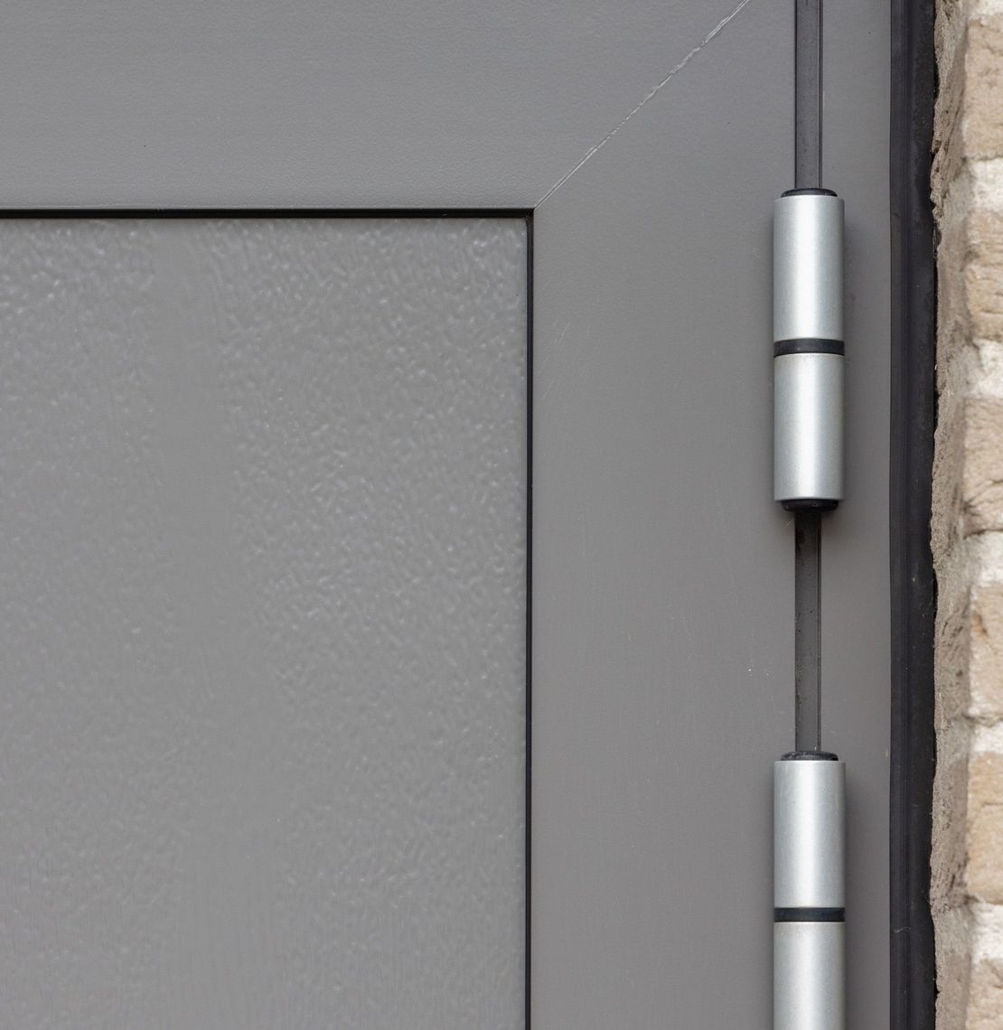Dankzij het thermisch onderbroken aluminium profiel en een breed scala aan panelen uit het sectionaaldeuren programma, creëren wij een deur die niet alleen functioneel is, maar ook perfect aansluit bij uw wensen. U kunt kiezen uit 40 mm geïsoleerde staalsandwichpanelen, volledig glas of een combinatie van beide voor een unieke uitstraling.