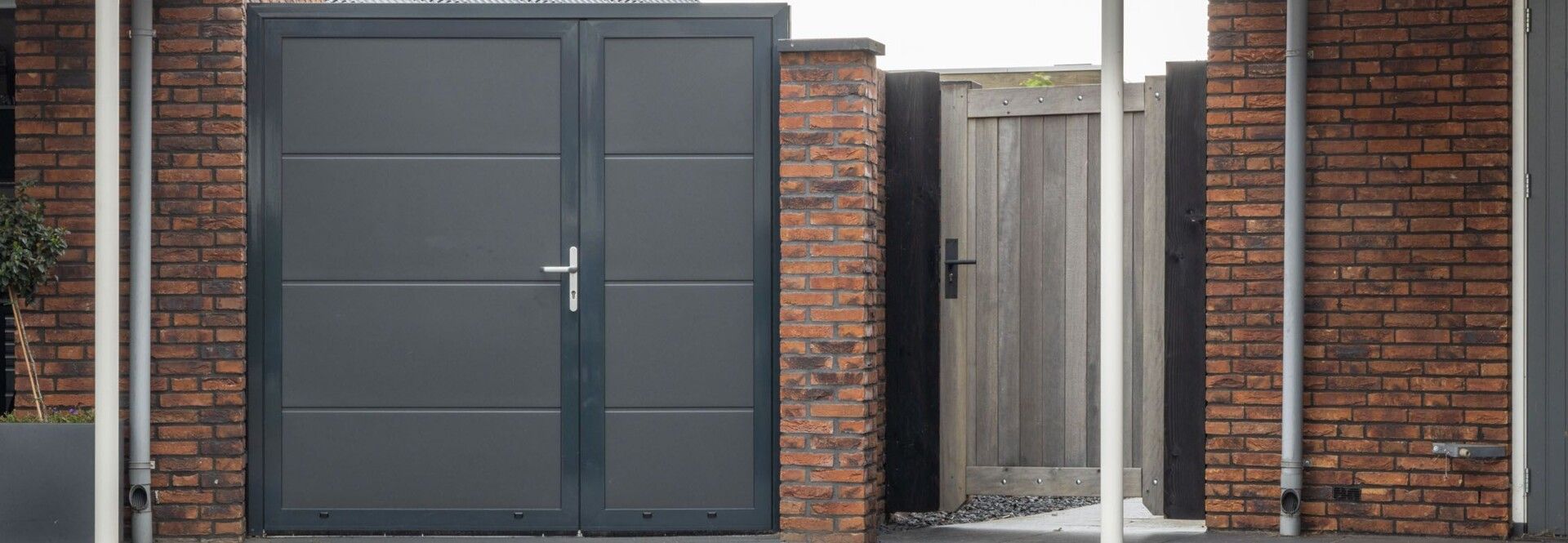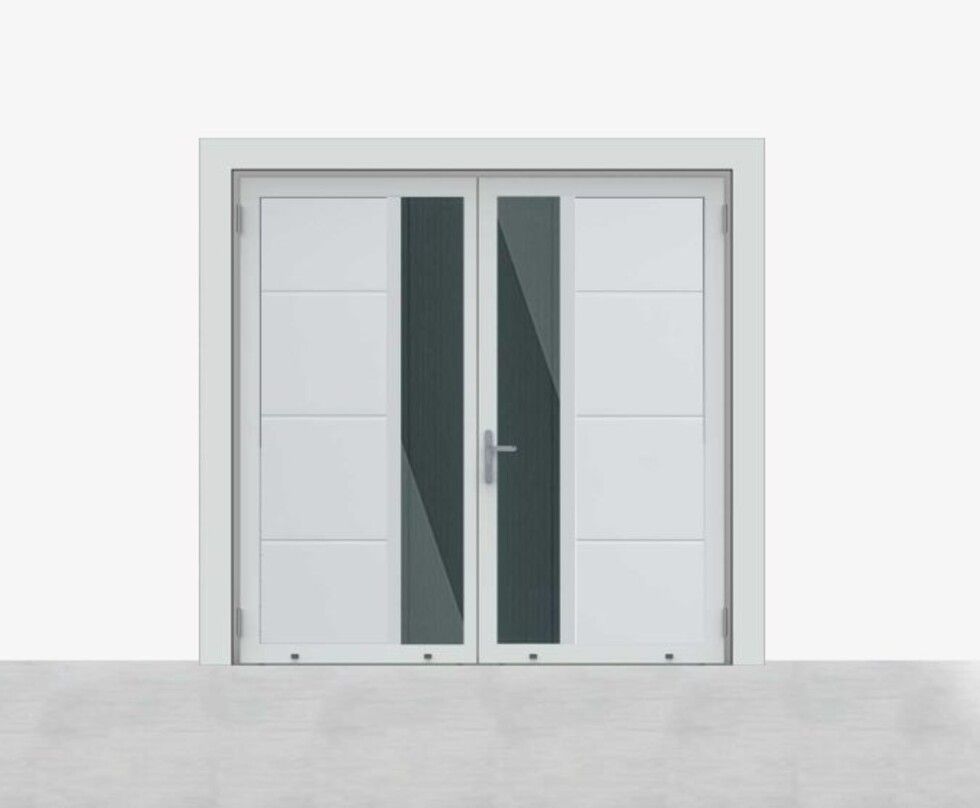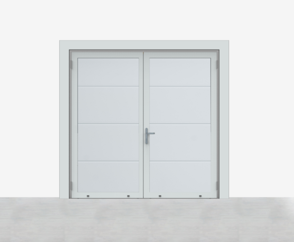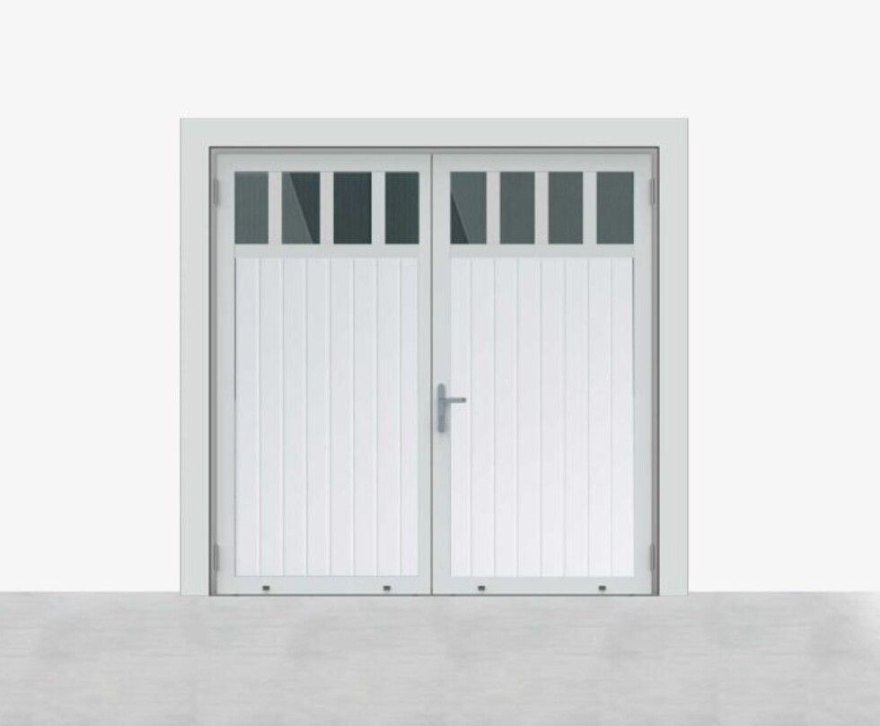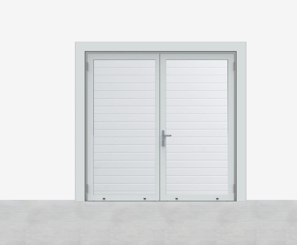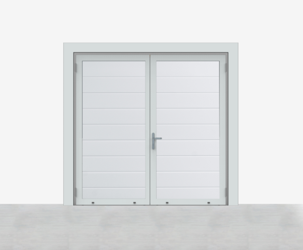 De Luxe-Line is er ook in een openslaande variant: de Luxe-Line Twin. Deze onderhoudsvrije oplossing biedt design, isolatie en gebruiksgemak in één, en is ideaal als alternatief voor traditionele garagedeuren. De deur kan op maat worden samengesteld met asymmetrische deurdelen, en het loopdeurdeel is zowel links of rechts te plaatsen, draaiend naar binnen of buiten.